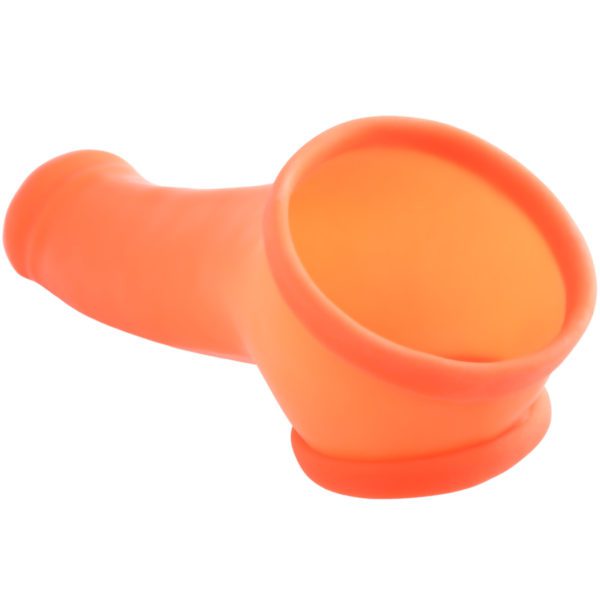 Die nahtlose Penishülle „Erik“ ist für die Anwendung an Penis und Hodensack gedacht und besteht aus Naturlatex (getaucht). Ausgestattet mit einem Hodenring, für intensivere Momente. Erik gibt es in 6 Farben, die Farbe Neon-Orange hat sogar die Eigenschaft unter Schwarzlicht zu leuchten. Die Latexstärke beträgt ca. 0,5 mm bis 0,7 mm. Der Einstiegsdurchmesser beträgt 5,5 cm, Schaftlänge 13 cm, Schaftdurchmesser 4,0 cm, Lochdurchmesser Hodenring: ca. 4,5 cm (dehnbar). Gesamtlänge 19 cm.
